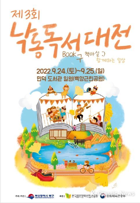 K-Classic News 최지나 기자 | 부산광역시 북구는 ‘책의 도시 북구’의 위상을 다시한번 떨칠 ‘제3회 낙동독서대전’을 오는 9월 24일부터 25일까지 양일간 만덕도서관 일원에서 개최한다 밝혔다.