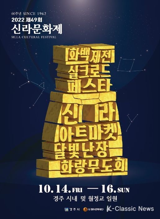 K-Classic News 최지나 기자 | 경주의 대표 명품문화 예술축제인 ‘2022 제49회 신라문화제’가 오는 30일부터 내달 16일까지 월정교와 시내일원에서 펼쳐진다.