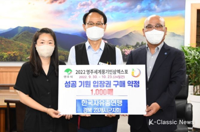K-Classic News 최지나 기자 | 영주세계풍기인삼엑스포조직위원회는 2022영주세계풍기인삼엑스포 성공개최를 위해 한국자유총연맹 경북 23개시군지회와 입장권 1000매 구매 약정을 체결했다고 29일 밝혔다.