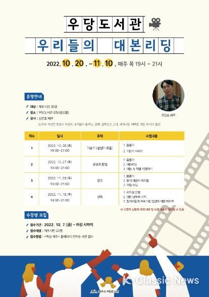 K-Classic News 최지나 기자 | 제주시 우당도서관에서는 배우와 함께 대본집을 낭독해보는‘우리들의 대본 리딩’프로그램을 운영한다고 밝혔다.