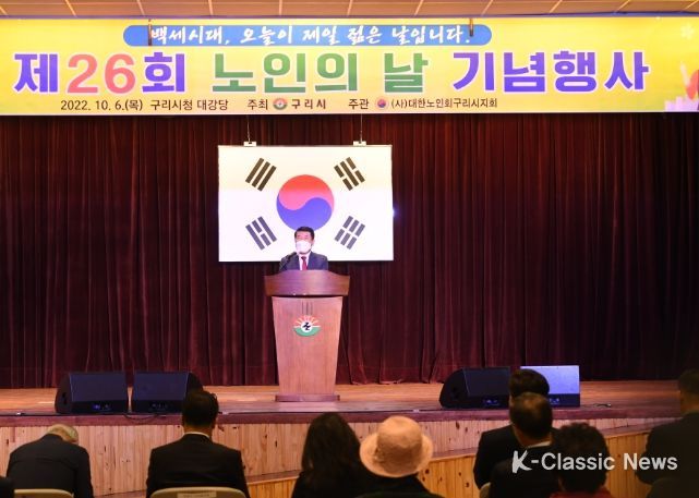 K-Classic News 최지나 기자 | 구리시는 6일 구리시청 대강당에서 대한민국과 구리시 발전을 위해 중추적 역할을 해오신 어르신들의 노고에 감사드리는 마음으로 ‘제26회 노인의 날’ 기념행사를 개최했다.