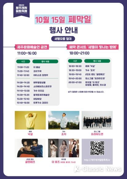 K-Classic News 최지나 기자 | 제주시는 제주바다와 새별오름에서 즐기는 신나는 레저스포츠 체험과 제주만의 색깔이 짙게 묻어있는 제주문화예술을 결합해 다양한 즐거움을 선사했던‘2022 제주레저힐링축제’가 10월 15일 새별오름에서 폐막행사를 끝으로 한 달여 간의 대장정을 마무리한다고 밝혔다.
