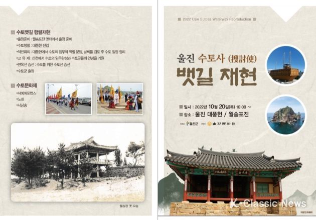 K-Classic News 최지나 기자 | 울진군은 10월 20일 구산항 일원에서‘2022년 울진 수토사 뱃길 재현 행사’를 개최한다.