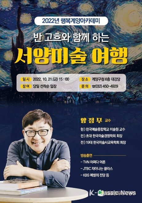 이번 행사를 기획한 구 관계자는 “행복계양 아카데미는 코로나19 이후 3년 만의 대면 강연으로, 많은 구민이 관심과 흥미를 가질 수 있는 주제의 특강을 준비하는데 힘을 쏟았다”면서 “미술을 통해 인문학을 이해하는 데 도움이 되는 시간이 되길 바란다” 고 말했다.