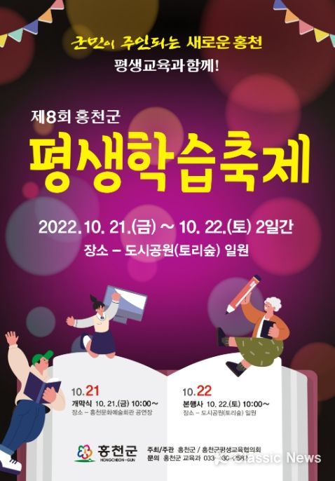 K-Classic News 최지나 기자 | 홍천군은 10월 21일과 22일 이틀동안 도시산림공원 토리숲 일원에서 제8회 홍천군 평생학습축제를 개최한다.