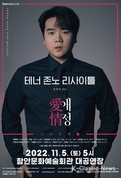 K-Classic News 최지나 기자 | 함안문화예술회관에서는 ‘테너 존노 리사이틀’ 공연을 5일 오후 5시 함안문화예술회관 대공연장에서 선보인다고 밝혔다.