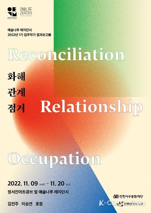 K-Classic News 최지나 기자 | 인천광역시 문화재단이 운영하는 예술나루 레지던시에서 오는 9일부터 20일까지 1기 입주 작가 결과 보고展 ‘화해·관계·점거’을 개최한다고 밝혔다.