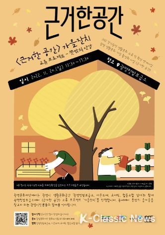 K-Classic News 박미영 기자 | 광명문화재단(대표이사 어연선)은 광명 내 민간 생활문화 공간과 협력하여 시민들에게 생활문화 프로그램을 제공하는 '근거한 공간' 교류프로젝트 ‘가을잔치’를 11월 20일 광명텃밭보급소(옥길동 70-5)에서 개최한다.