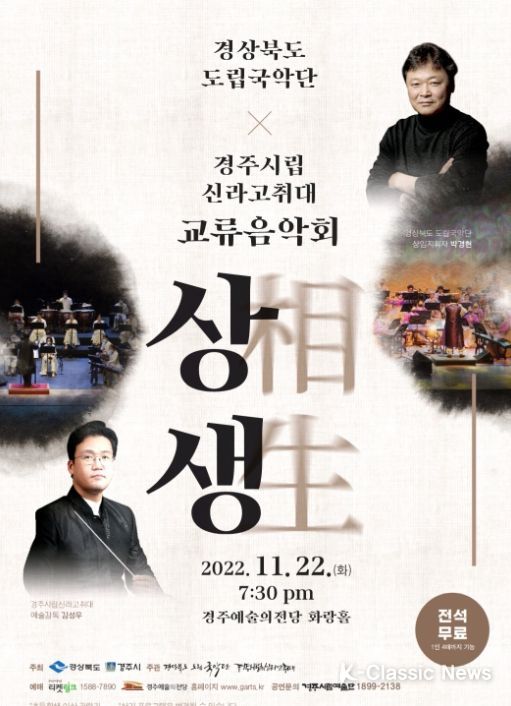 K-Classic News 최지나 기자 | 경주 대표 문화콘텐츠인 경주시립 신라고취대가 22일 저녁 7시 30분 경주예술의전당 화랑홀에서 경상북도 도립국악단과 함께 ‘교류음악회 – 상생’ 공연을 개최한다.