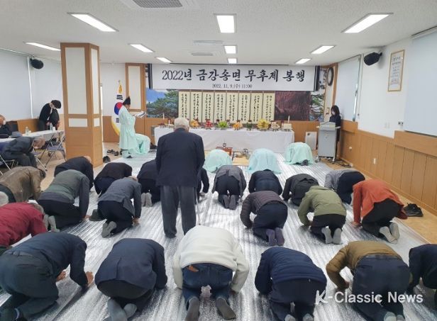 이날 금강송면 새마을부녀회(회장 한성남)에서 정성스럽게 준비한 제사상으로 제례를 마치고, 참석자들은 고인의 은덕을 기리며 마을의 안녕과 주민들의 건강을 기원했다.