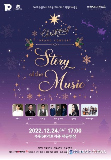 특히, 이번 수원SK아트리움의 크리스마스 그랜드 콘서트 '스토리 오브 더 뮤직'은 올 한 해 공연장을 방문한 관객들에게 감사의 마음을 담아, 2022년 수원SK아트리움 기획공연 관람 티켓 실물 소지 또는 예매 내역서 확인 시 50% 할인된 가격으로 티켓을 구매할 수 있다.