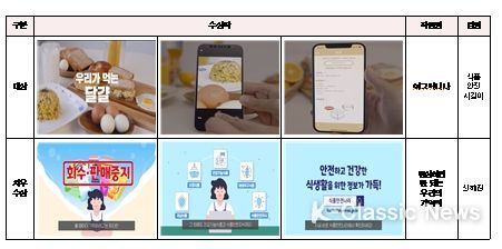 K-Classic News 최태문 기자 | 식품의약품안전처와 식품안전정보원(원장 임은경)은 국민을 대상으로 ‘2022 식품안전나라·내손안 20초 영상 공모전’을 개최해 11월 23일 5건의 우수작을 선정하고 시상했습니다.