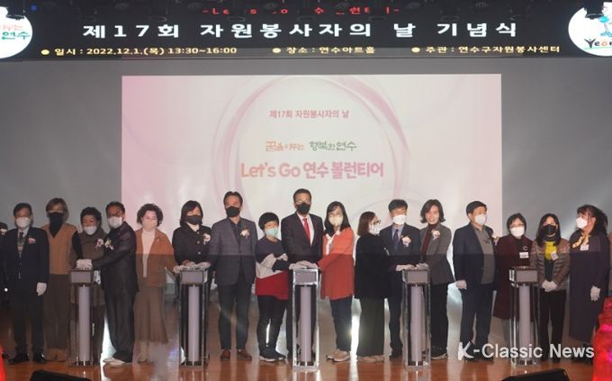 K-Classic News 최지나 기자 | 인천광역시 연수구는 1일 연수구자원봉사센터 주관으로 구청 연수아트홀에서 ‘렛츠고 연수 볼런티어, 제17회 자원봉사의 날 기념식’을 개최했다.