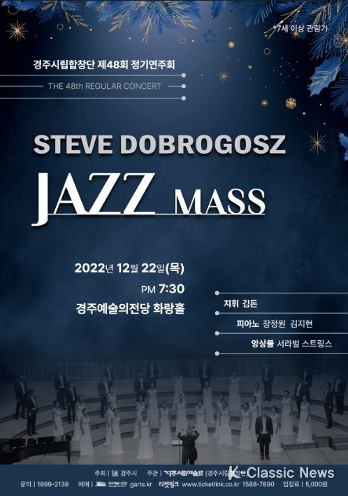 이번 정기연주회는 현존하는 미국 출신 작곡가 STEVE DOBROGOSZ의 ‘MASS’라는 합창곡을 선보인다. 이 곡은 1992년 현악앙상블과 합창단을 위해 작곡된 곡으로 고전적이면서도 재즈 스타일이 돋보이는 작품이다.