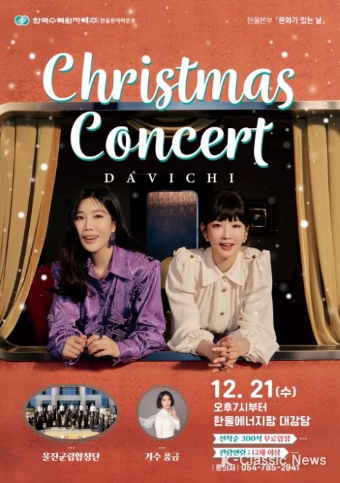 K-Classic News 최태문 기자 | 한국수력원자력(주) 한울원자력본부는 21일 오후 7시 한울에너지팜 대강당에서‘문화가 있는 날 송년 음악회’를 개최한다.