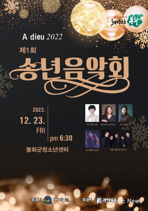 K-Classic News 최지나 기자 | (사)한국예총 봉화지회는 23일 오후 6시 30분 봉화군청소년센터 공연장에서 ‘송년음악회’를 개최한다.