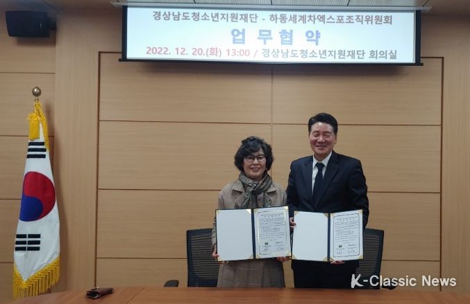 K-Classic News 최지나 기자 | 경상남도 (재)하동세계차엑스포조직위원회는 20일 경상남도 청소년 지원 재단과 2023 하동세계차엑스포의 성공 개최를 위한 업무협약을 체결했다고 밝혔다.
