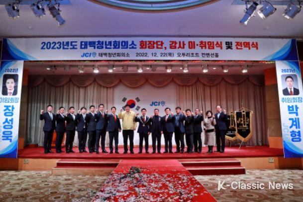 K-Classic News 김성연 기자 | 태백청년회의소가 지난 22일 오투리조트 컨벤션홀에서 신·구 회장단 및 감사 이·취임식과 전역식을 개최했다.