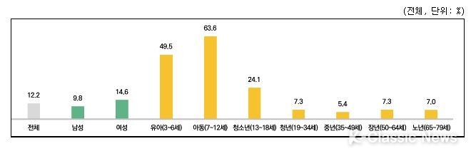 문화예술교육 참여율 12.2%, 코로나19 이후 9%포인트 감소, 중년층 가장 저조