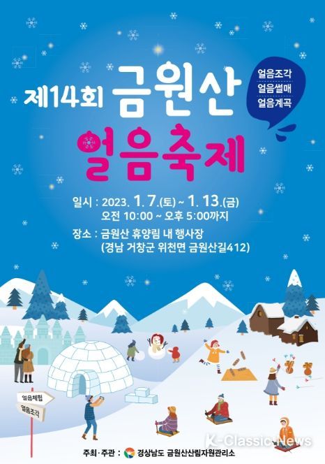K-Classic News 최지나 기자 | 경상남도 금원산산림자원관리소는 오는 7일부터 13일까지 7일간 ‘제14회 금원산 얼음축제’를 금원산자연휴양림에서 개최한다.