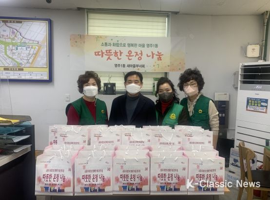 K-Classic News 김성연 기자 | 부산 중구 영주1동 새마을부녀회는 지난 12일 설맞이 ‘따뜻한 온정나눔’ 행사로 관내 저소득 20세대에 떡국 떡과 마스크를 전달했다.