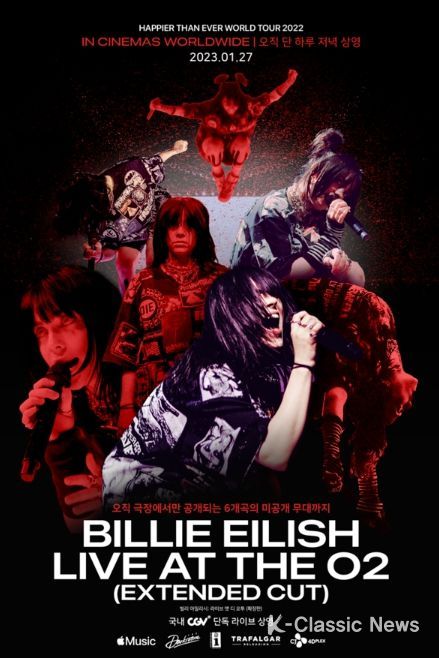 한편 ‘빌리 아일리시 : 라이브 앳 디 오투(Billie Eilish Live At The O2) (확장판)’은 오늘(18일) CGV에서 티켓 오픈되며, 자세한 사항은 CGV 모바일 앱과 공식 홈페이지에서 확인할 수 있다.