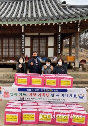 이숙아 무안읍장은 “모두가 힘든 시기인 만큼 특히 어려운 이웃들에게는 더 따뜻한 관심과 지원이 필요할 때 이른 새벽부터 고생하신 지사협 위원님들께 감사드린다”며 “새해에도 소외되는 이웃이 없는, 함께하는 행복한 무안읍이 되도록 세심하게 잘 살피겠다.”고 고마운 마음을 전했다.