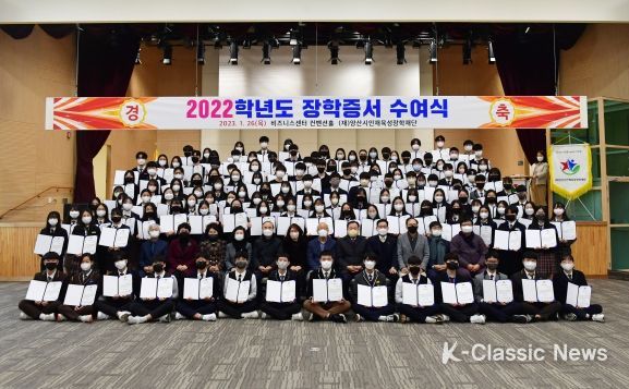 K-Classic News 김성연 기자 | 양산시 인재육성장학재단은 26일 양산비즈니스센터 컨벤션홀장에서 2022학년도 중·고 장학생 선발학생에 대한 장학증서 수여식을 가졌다.