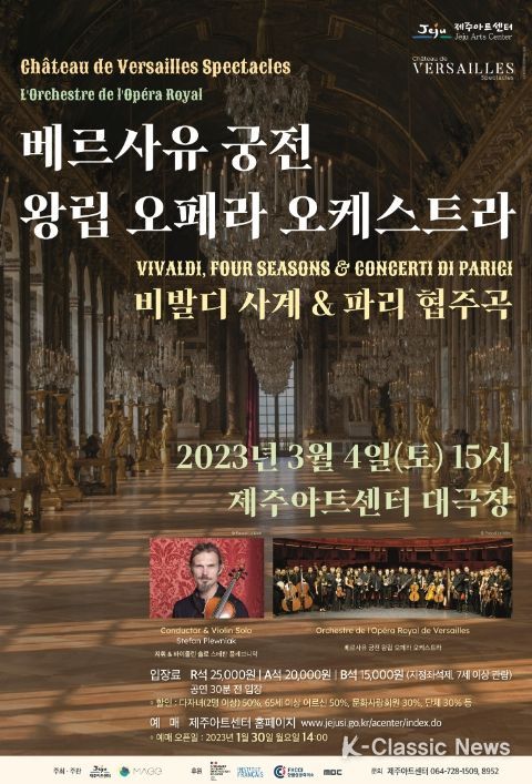 K-Classic News 최지나 기자 | 제주아트센터는 ‘베르사유 궁전 왕립 오페라 오케스트라 내한 공연, 비발디 사계 & 파리 협주곡’을 3월 4일 토요일 오후 3시에 개최한다.