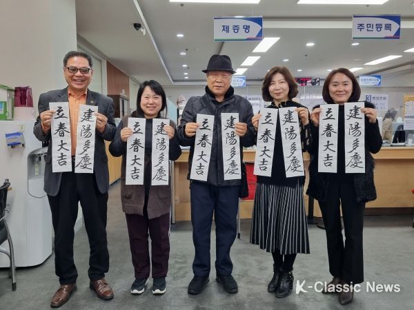 K-Classic News 김성연 기자 | 광산구 송정1동 주민자치회가 입춘을 앞둔 2일 동 행정복지센터를 방문하는 주민에게 ‘입춘대길(立春大吉)·건양다경(建陽多慶)’이라는 문구가 적힌 입춘첩을 나눠주는 행사를 가졌다.