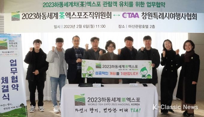 K-Classic News 최지나 기자 | 경상남도 하동세계차엑스포조직위원회는 2023년 2월 6일 창원특례시여행사협회와 2023하동세계차엑스포의 성공적 개최를 위해 업무협약을 체결했다고 밝혔다.