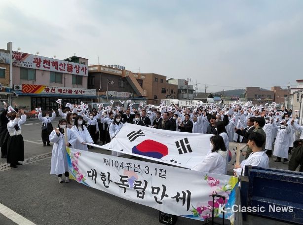 K-Classic News 최지나 기자 | 홍성군 광천읍이 제104주년 3.1절을 맞아 우리민족의 독립을 위해 목숨을 바친 선열들의 넋을 기리고 애국정신을 후대에 알리기 위해 개최한 기념행사가 성황리에 마무리됐다고 밝혔다.