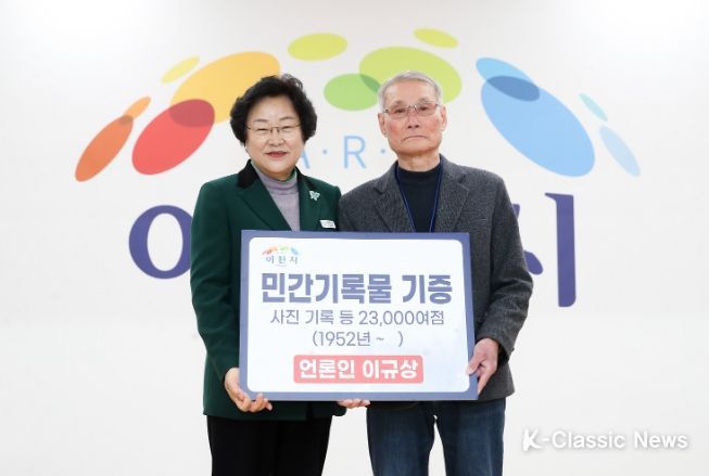 K-Classic News 최지나 기자 | 이천시는 2일 열린 월례조회에서 민간기록물을 기증한 언론인 이규상씨에게 제1호 민간기록물 기증증서와 감사패를 전달했다고 3일 밝혔다.