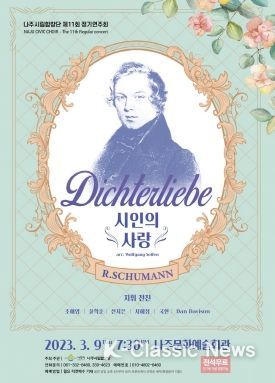 전진 나주시립합창단 예술감독은 “독일과 한국, 지역과 문화권의 경계를 초월해 계절의 서정성을 느낄 수 있는 순수하고 아름다운 가곡들로 채웠다”며 “합창을 사랑하는 시민들의 많은 관심과 참여를 바란다”고 말했다.