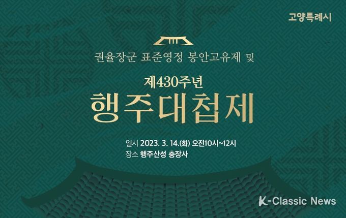 K-Classic News 최지나 기자 | 고양특례시가 올해로 제430주년을 맞는 행주대첩을 기념하는 행주대첩제를 오는 3월 14일 오전 10시 행주산성 내 충장사에서 연다.