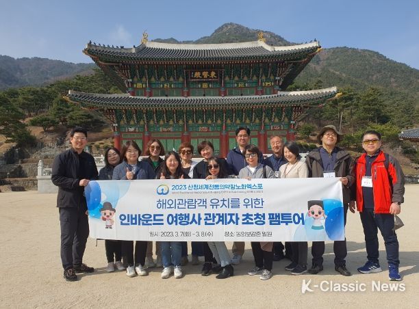 K-Classic News 최지나 기자 | (재)산청세계전통의약항노화엑스포조직위원회가 올해 9월 동의보감촌일원에서 열리는 '2023 산청세계전통의약항노화엑스포'의 외국인관광객 유치 확대를 위해 외국인의 국내여행을 주선하는 인바운드 여행사 공략에 나섰다.