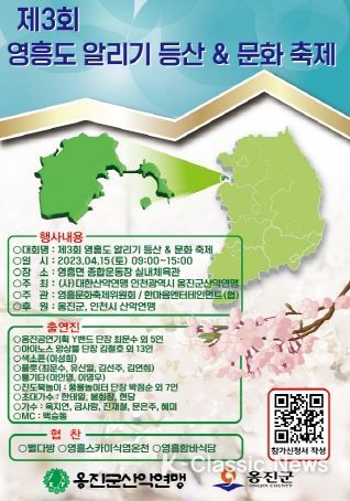 K-Classic News 김성연 기자 | 옹진군산악연맹과 영흥문화축제위원회가 주최, 주관하고 옹진군이 후원하는 ‘제3회 영흥도 알리기 등산문화 축제’가 오는 4월 15일 영흥면 종합운동장 실내체육관에서 개최된다.