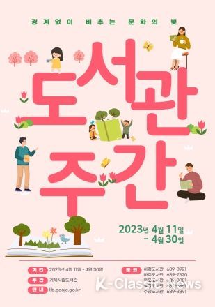 K-Classic News 김성연 기자 | 거제시는 오는 4월 도서관 주간을 맞아 도서관 이용 활성화 및 독서 진흥을 위해 각종 행사를 운영한다고 밝혔다.