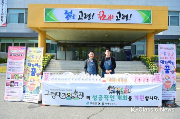 K-Classic News 김성연 기자 | 고령군은 3월 29일 카페청솔로9과 공동으로 2023 고령대가야축제의 성공적인 개최를 기원하는 음료 무료 나눔 행사를 진행했다.