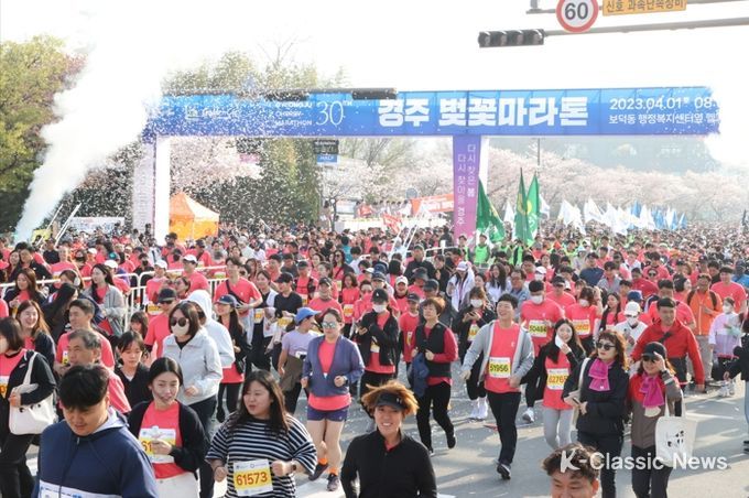 K-Classic News 이호민 기자 | 봄 정취가 한껏 무르익어가는 벚꽃 시즌, 전국에서 가장 아름다운 마라톤 코스를 자랑하는 ‘경주벚꽃마라톤대회’가 1일 오전 보문관광단지에서 출발 총성이 울렸다.