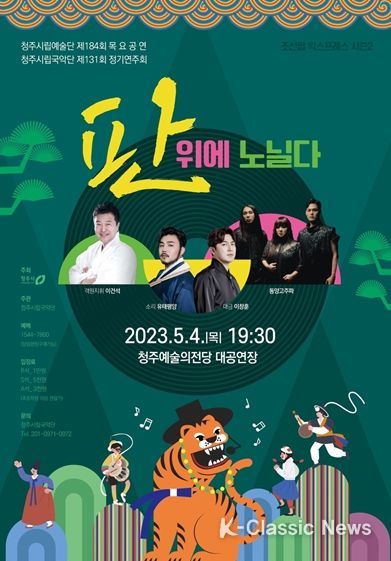 K-Classic News 김성연 기자 | 청주시립국악단이 오는 4일 오후 2시부터 제131회 정기연주회 조선 팝 익스프레스 시즌 2‘판 위에 노닐다’공연 예매를 시작한다.