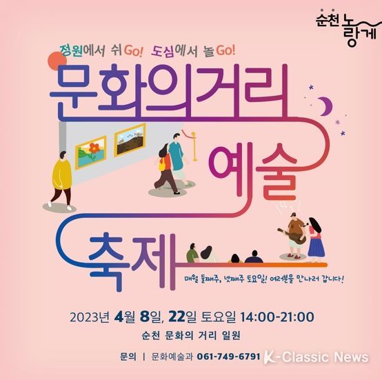 K-Classic News 이호민 기자 | 순천시는 오는 8일 토요일 ‘문화의거리 예술축제’를 개최해 순천시를 방문한 정원박람회 관광객을 도심으로 유인하겠다고 밝혔다.