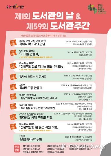 K-Classic News 이호민 기자 | 순천시가 오는 12일부터 일주일간 ‘경계 없이 비추는 문화의 빛, 도서관’을 주제로 제59회 도서관 주간 행사를 운영한다.