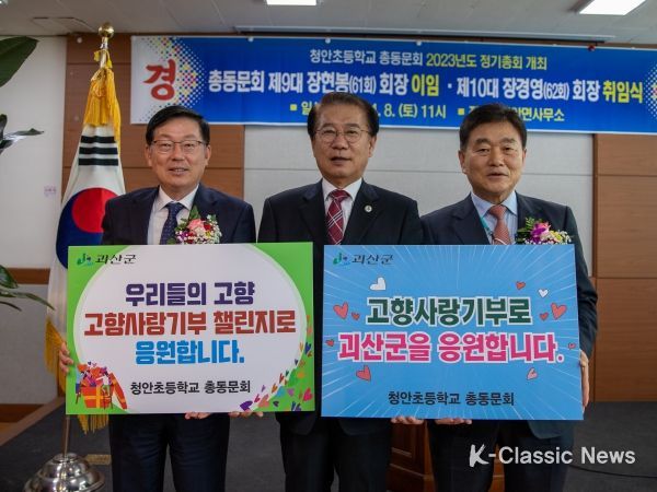 K-Classic News 김성연 기자 | 충북 괴산군 청안초등학교 총동문회가 고향사랑기부제에 동참하며 훈훈한 봄바람을 불러오고 있다.