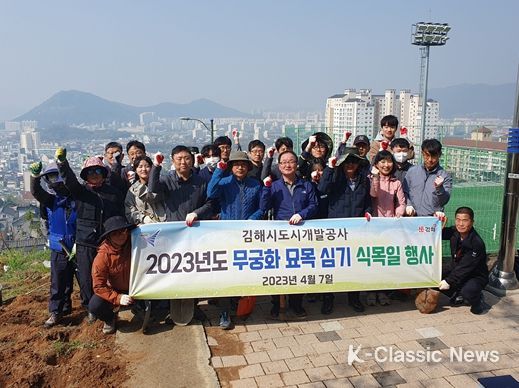 K-Classic News 김성연 기자 | 김해시도시개발공사는 지난 7일 제78회 식목일 행사에 동참하고자 공사에서 관리하는 분성체육공원 산책로 일대에 무궁화 묘묙 200주를 심는 행사를 개최했다고 밝혔다.