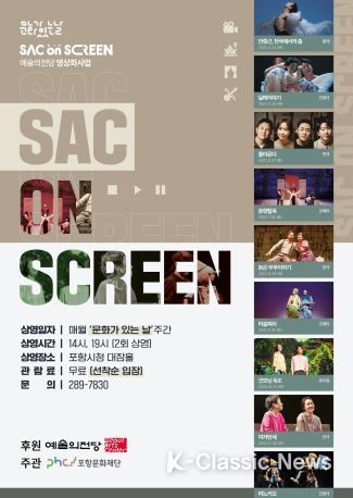 K-Classic News 최지은 기자 | 포항문화재단 대잠홀에서 ‘영상으로 만나는 예술의전당 우수공연-SAC on Screen’이 4월부터 12월까지 ‘문화가 있는 날’ 주간에 총 9편의 작품으로 관객들을 맞이할 예정이다.