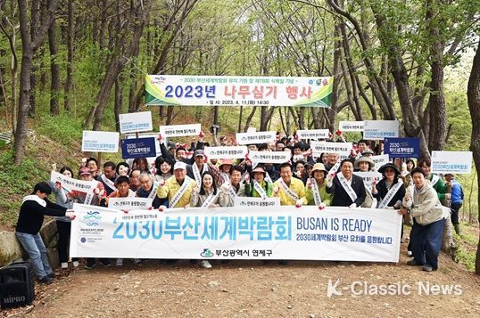 K-Classic News 김성연 기자 | 연제구는 지난 11일 황령산 일원에서 구민과 관계 공무원 등 100여 명이 참석한 가운데 ‘2030부산세계박람회 유치 기원 및 제78회 식목일 기념 나무심기 행사’를 개최했다.