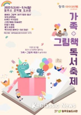 K-Classic News 김성연 기자 | 청주오송도서관을 비롯한 청주시 권역별 도서관은 오는 5월 3일부터 5월 14일까지 12일간‘가족+그림책 독서축제’를 개최한다.