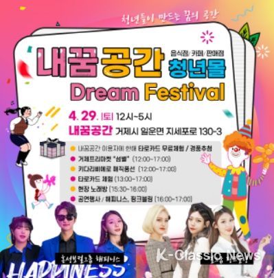 K-Classic News 김성연 기자 | 거제시는 오는 4월 29일 토요일, 일운면 지세포에 위치한 『내꿈공간』에서 시민관광객 맞이 ‘드림 페스티벌’행사를 개최한다.