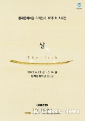 K-Classic News 김성연 기자 | 부산 동래구는 동래문화회관에서 기획전시 ‘살 –The flesh’ 박주호 초대전을 오는 4월 21일부터 5월 14일까지(10:00~17:00, 기간 중 월요일 휴무) 개최한다고 밝혔다.